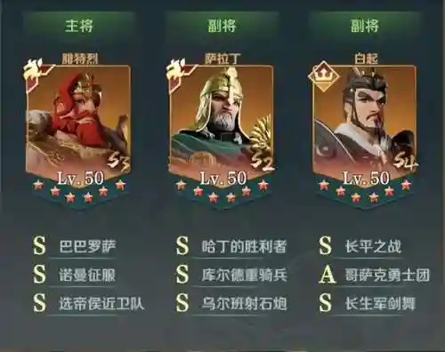 加点方案:速度 腓特烈 200, 萨拉丁190加1(需考虑萨拉丁自带技能进阶), 善德全防