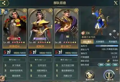 S4后期顶配织田逐渐减少,榜单上基本上都是嬴政朱元璋胜利号恐慌队,平民还是推荐织田队,需要考虑换阵资源问题。